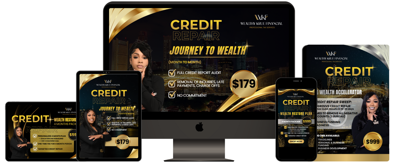 Personalized, aggressive, and results-driven credit repair backed by Wealthy Krue Financial. Whether you need steady rebuilding or rapid results, we have a plan designed for YOU.