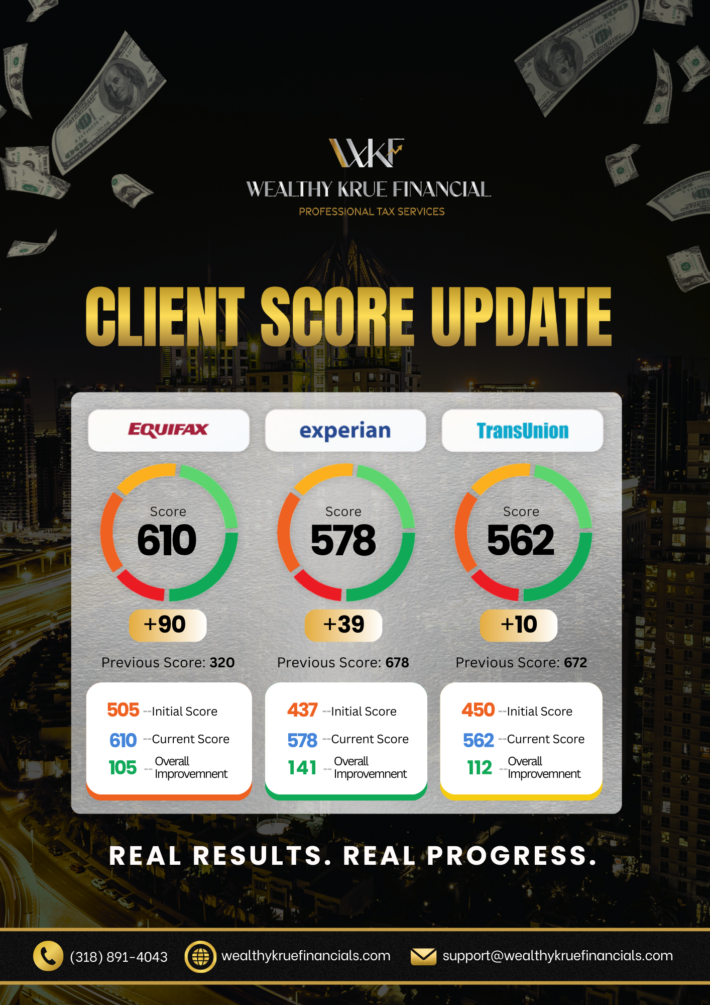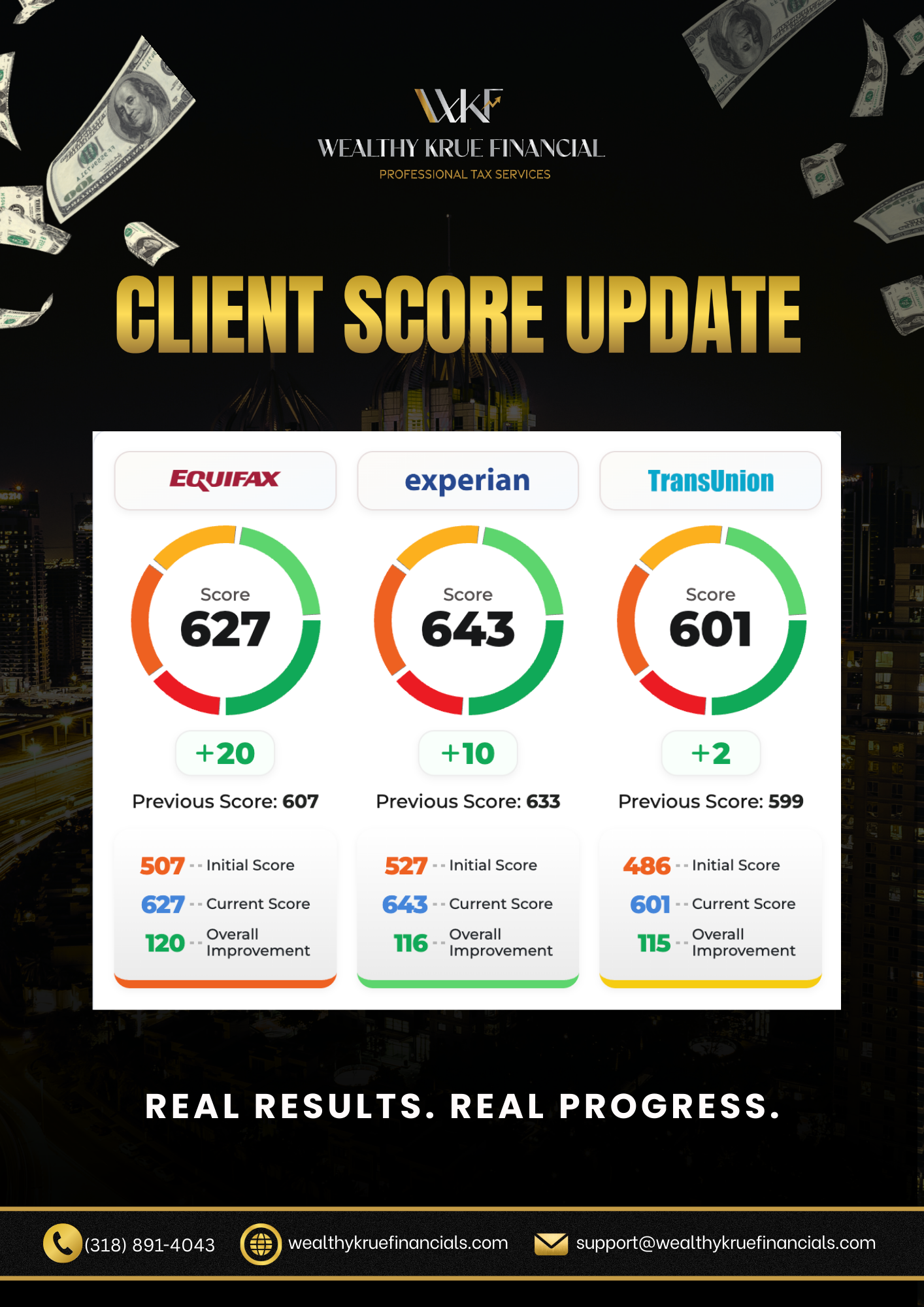 At Wealthy Krue Financial, we use a targeted, personalized, 3-bureau dispute strategy built from your actual credit data.